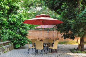 4093785-Summer-Patio-with-tables-and-cane-chairs-under-umbrella-in-China-Stock-Photo